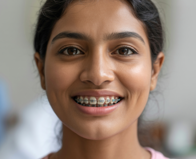 Tooth-colored brackets for a less noticeable appearance, ideal for image-conscious individuals.