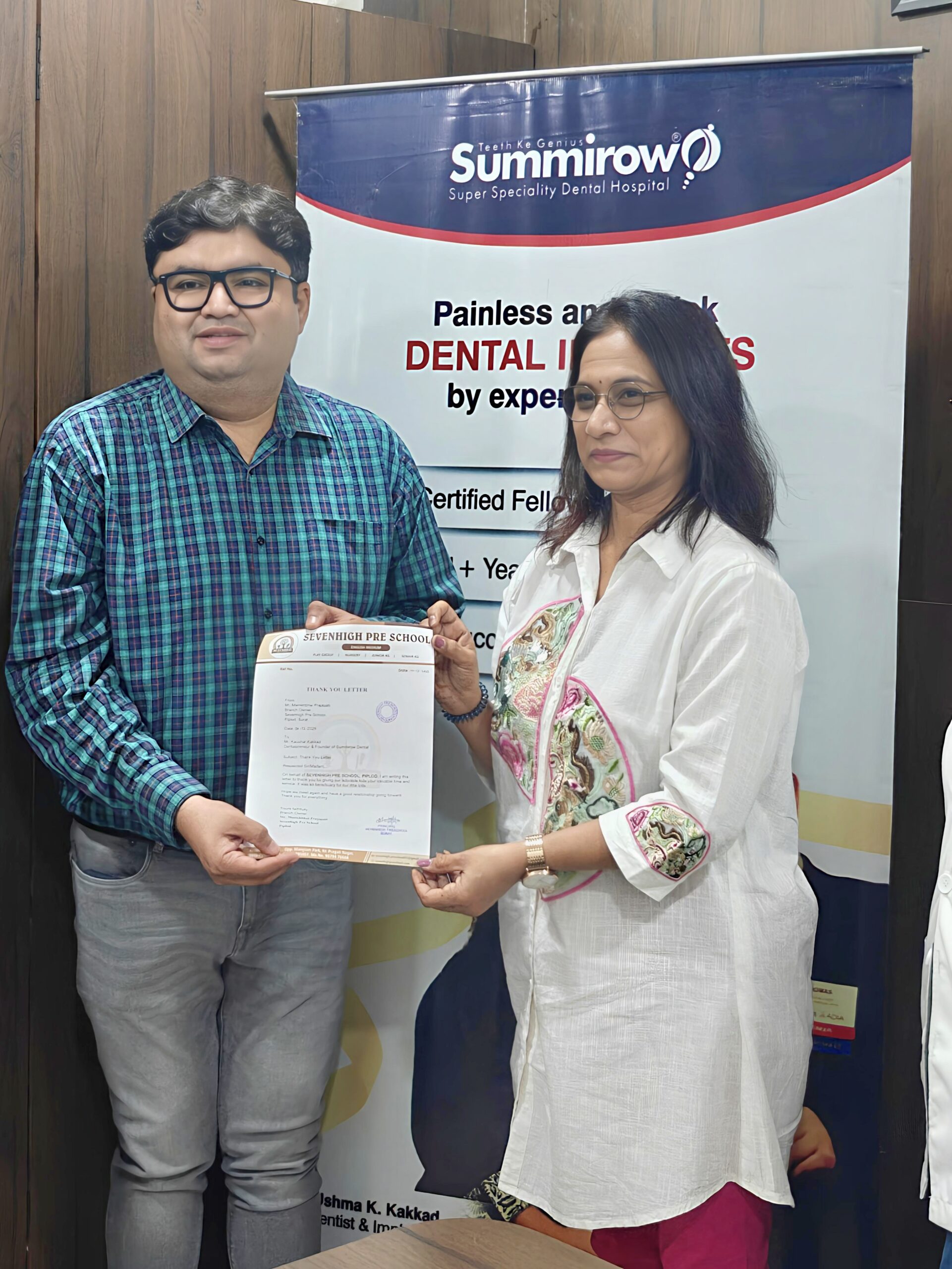EXCELLENT Based on 1923 reviews Posted on D P ShegekarTrustindex verifies that the original source of the review is Google. Dental treatment including implant were good and clinic staff is supportivePosted on PARV SANTNOOMTrustindex verifies that the original source of the review is Google. Definitely a good choice I done to choose Summirrow for my oral treatment.Posted on Madhu BordiaTrustindex verifies that the original source of the review is Google. It was really nice experience. Dr Ushma Kakkad was really nice and my filling was done painlessly.Posted on Manjuben LukhuiTrustindex verifies that the original source of the review is Google. Aa clinic na doctor ni service ane behaviour pn saro chePosted on Denisha PatelTrustindex verifies that the original source of the review is Google. Excellent service Friendly environmentPosted on Mitesh ShukalTrustindex verifies that the original source of the review is Google. I had a great consultation at Summirow Dental Clinic with **Dr. Ushma Kakkad**. She explained everything clearly and patiently, and I didn’t feel rushed at all. She also showed me the **iTero scan** and guided me properly about **Invisalign** treatment options, timelines, and what to expect. The clinic is very clean, the staff is polite, and the overall experience felt professional and premium. Highly recommended!Posted on Tejal TadviTrustindex verifies that the original source of the review is Google. Very nicePosted on Rohit PatelTrustindex verifies that the original source of the review is Google. Best dental hospital in vesu surat and dr ushma kakkad well treated for dental scaling one time you can visitPosted on Virendra ShardaTrustindex verifies that the original source of the review is Google. I recently visited summirow dental and thank you to drushma kakkad for best pain free root canal treatmentPosted on Prashant KalsariyaTrustindex verifies that the original source of the review is Google. ExcellentVerified by TrustindexTrustindex verified badge is the Universal Symbol of Trust. Only the greatest companies can get the verified badge who has a review score above 4.5, based on customer reviews over the past 12 months. Read more