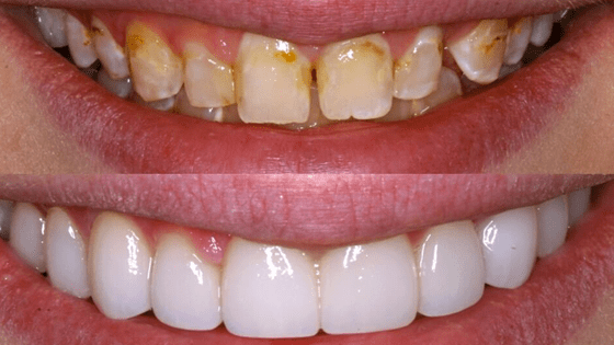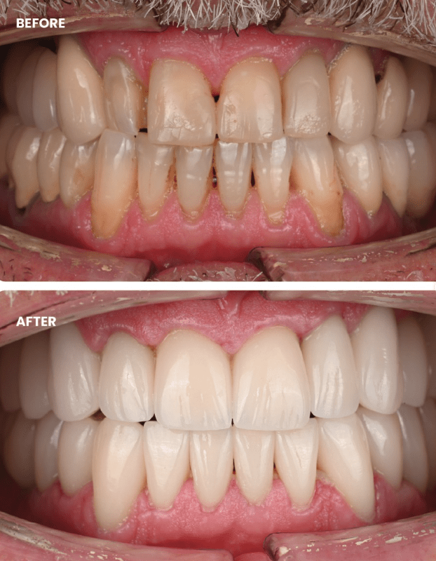 - Combination of implants, crowns, veneers & bite correction